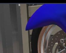 棚の下のタイヤの山にコントローラーを使うと赤と青のバイクのミニチュアが