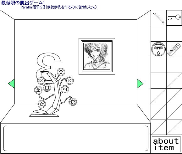 部屋の中からの脱出ゲームです。 カーネルおじさんみたいなマネキンが置いてある部屋から鍵を探し出して脱出してください。 関連記事 YURIA'S ROOM YURIA'S ROOM2 YURIA'S HOTEL YURIA'S ROOM3 ゲームをPLAYする