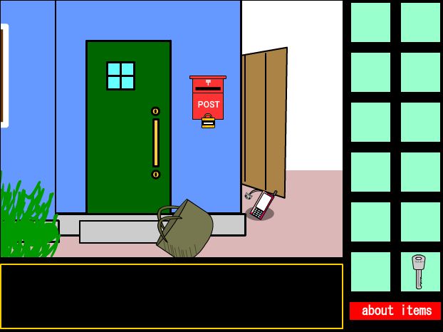 部屋の中からの脱出ゲームです。 作者さんが練習がてらに製作された試験的な作品みたい です。 アイテムを見つけ出して脱出してください。 製作は、日本語板無料脱出ゲーム集の管理人さんです。 ゲームをPLAYする