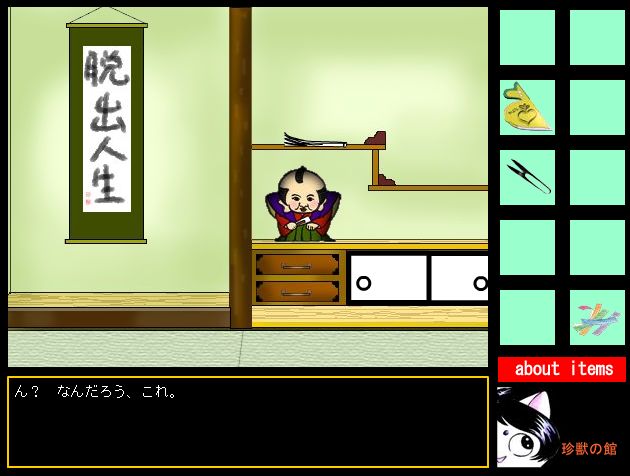 部屋の中からの脱出ゲームです。 アイテムを見つけ出してそれを使って 脱出してください。 関連記事 TLFMER TLFMER2 ゲームをPLAYする